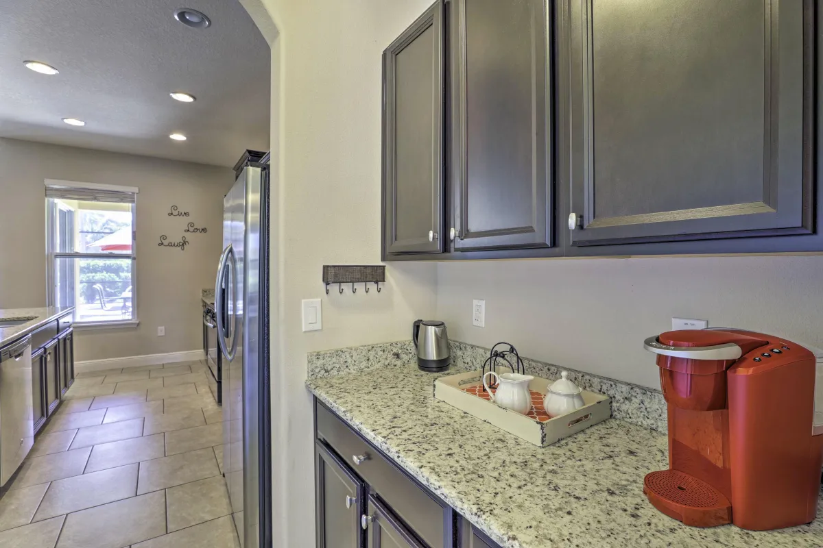 KITCHEN: Fully equipped w/ cooking basics, Keurig coffeemaker, 2 high-top bar seats, lots of counter space, granite counter tops