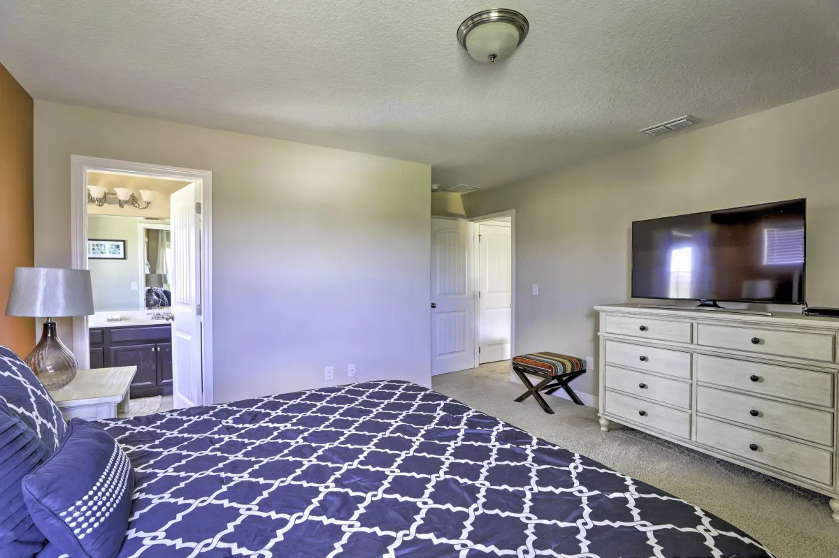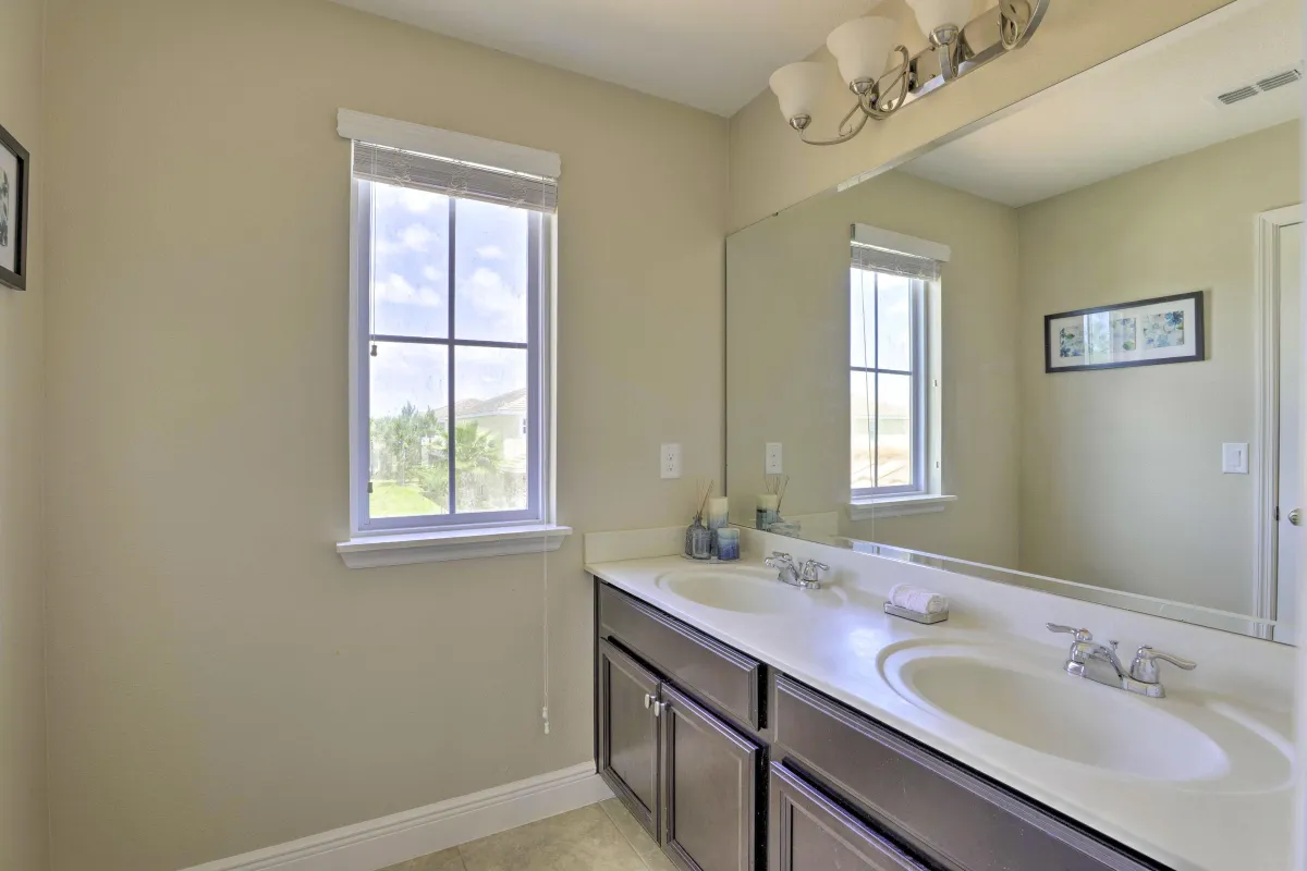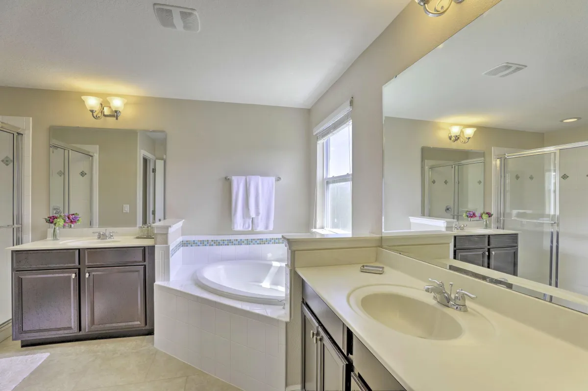 Make your Florida vacation one to remember with our 6-bedroom, 5-bath Davenport vacation home! Our spacious Solterra Resort 3250 square foot home boasts a sleek modern style, multiple entertainment spaces, and a private lanai with pool and spa - all just a few minute walk from world-class resort amenities!